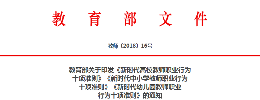 《新时代高校教师职业行为十项准则》《新时代中小学教师职业行为十项准则》《新时代幼儿园教师职业行为十项准则》