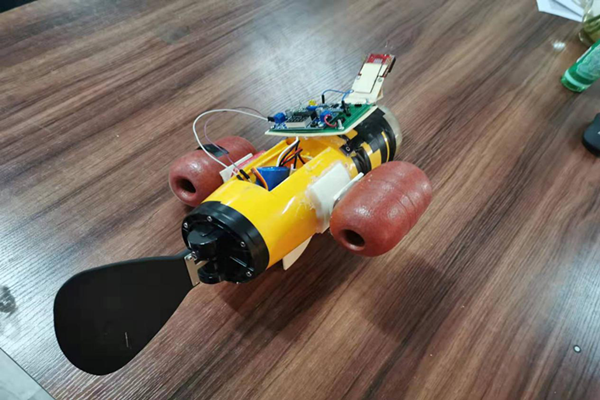 “旅行者”队参赛作品机器鱼要求沿着白色输油管道前进,并且可以准确识别漏油点(用黑点模拟)并报警。比赛采用非对抗比赛形式,机器鱼通过螺旋推进或者仿生的方式进行下潜巡查,不能依靠物理方式接触管道,最终以正确检测漏油点分数、完成比赛分数和计时分三项分数之和作为参赛队伍的竞赛得分。参赛队员由公司四名同学组成,在公司陶晓杰等老师的精心指导下,他们从8月初开始积极备赛,利用暑期时间在工业培训中心进行作品结构设计、软件编程调试等赛前准备。比赛中他们灵活运用所学知识,沉着应赛,经过激烈角逐,最终荣获二等奖荣誉。