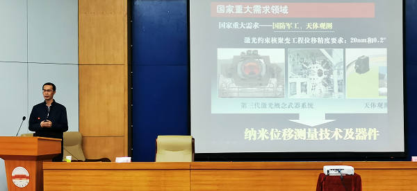 刘教授介绍了纳米位移测量技术及器件是高端装备制造领域的核心技术和关键功能部件,是实现高精度定位与控制的“眼睛”,直接决定和影响着主机的性能。刘教授针对纳米测量科学前沿面临的测量范围与精度的矛盾、精度提高导致的误差溯源、克服衍射极限改善分辨力等三个基础性共性问题,首次提出“纳米时栅”测量学术思想,研究基于测量基准时空变换的纳米时栅位移传感新理论和新方法,其测量原理决定了其测量性能的提高不依赖于其机械制造的“精”和“密”,从根本上摆脱了对大尺寸微纳加工设备的依赖。为同时实现“大量程、纳米精度、高分辨力”提出了一条完全不同于国内外现有技术发展的新思路。刘教授最后简要介绍了围绕纳米时栅开展的前瞻性探索研究情况。