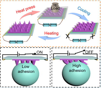 智能结构表面由于其广泛的应用领域(如自清洁、防污、油水分离)激发了科研人员浓厚的研究兴趣。然而,大多数表面的智能性是由表面化学和静态微结构的变化实现的,严重阻碍了智能表面的应用范围。为了解决这些问题,形状记忆聚合物(SMP)材料被应用于智能表面。具有微纳结构的SMP表面在调谐界面润湿性和粘附性等方面有着重要的应用潜力。并且,SMP表面的微结构在外界条件(电场、磁场、温度、湿度等)的刺激下,可以实现临时形状和原始形状的可逆转换。