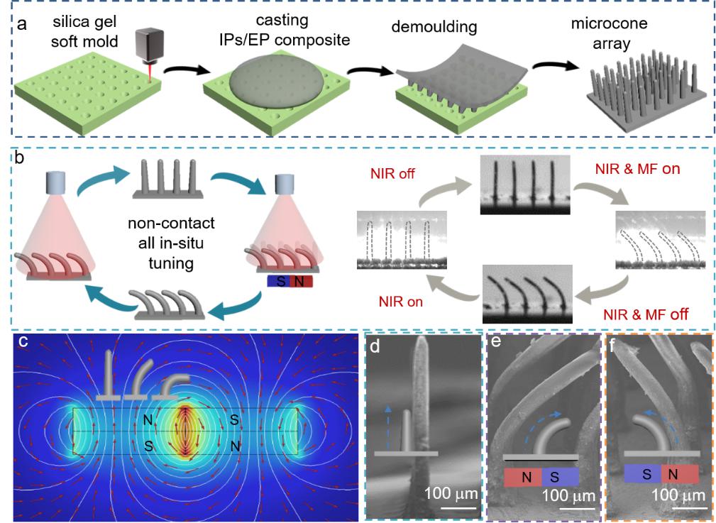 SMP微锥阵列的制备及非接触式原位调谐过程