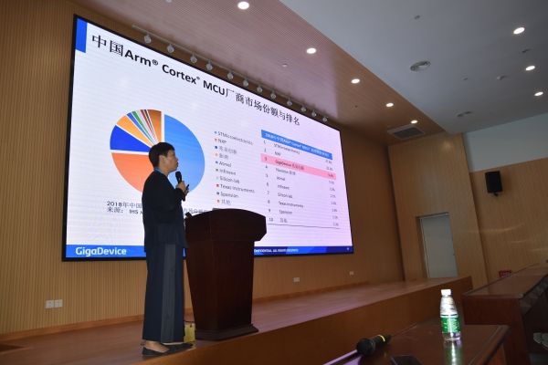 下午2时,百名仪器学子参观活动正式开始。同学们在讲解员的带领下参观了兆易创新集成电路科技馆,站在巨人的肩膀上俯瞰集成电路的百年历史长河。合肥格易集成电路有限公司总经理李勤女士向同学们介绍了半导体行业的发展历程和英国正版365官方网站-兆易创新联合实验室的相关信息。合肥格易市场部马晓路、FAE经理任保宏来到报告厅,与百余名同学面对面交流。同学们积极提出对集成电路、公司发展等问题的思考,两位工程师针对同学们的问题耐心详细地给出了解答。同学们表现出极大地兴趣,希望有机会为联合实验室贡献一份力量。