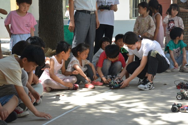 在室外科技科普作品展示互动区,员工志愿者组织开展了机器人设备、小智伴语音机器人、VR设备、3D打印设备、无人机设备、恩智浦智能车、激光测直径装置等设备的互动活动。小朋友们个个仔细观察、琢磨,聆听志愿者们的讲解。互动环节中,争先体验这些高科技设备。在志愿者的耐心指导和帮助下,小朋友们逐渐掌握了设备的操作方法,有些小朋友能够驾驶无人机飞上天空、操作模仿机械臂抓取物体、使用3D打印笔制作自己喜欢的小作品,有些小朋友独自完成生动有趣的物理小实验、带上VR感受虚拟世界的神奇,有些小朋友通过观看3D打印机、激光测头发直径装置和恩智浦智能车的演示,愈发感受到了科技的魅力。科普活动现场科技科普作品吸引着同学们动手又动脑,通过亲身体验,近距离感受到科技的奥秘。此次活动吸引了陈营村小学全体170余名师生参加。