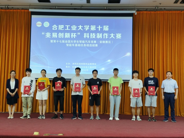 本次大赛共分为智能车和科技制作两个赛道,智能车赛道分为沁恒和兆易两个类别,共有40余组参赛。经过一天激烈的角逐,沁恒组共选出一等奖4支队伍,二等奖6支队伍,三等奖10支队伍;兆易组共选出一等奖3支队伍,二等奖4支队伍,三等奖7支队伍,同时选拔出6支队伍参加安徽省智能车竞赛。科技制作赛道通过初赛和复赛选拔,共有11件作品进入决赛,决赛现场专家评委从作品功能、创新点、存在的不足等方面对参赛作品进行评审,并提出改进建议。经过评委审议,作品“清淼智航—智能清污设备及管理系统引领者”、作品“Osboat—基于视觉识别系统的海上一体化清油平台”荣获一等奖;作品“水陆两栖垃圾清理机器人”、作品“城市下穿隧道积水预警系统”、作品“花生种植自动破膜系统”、作品“共享雨伞解决方案&雨伞寄存服务”荣获二等奖;作品“社区安防机器人”、作品“基于卷积神经网络的油菜病害识别无人机系统”、作品“超视科技-全方位桥梁巡检云平台”、作品“墨水屏气象台历”、作品“水产养殖移动检测船”荣获三等奖。