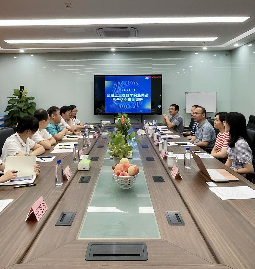 6月27日下午,公司党委书记钟军率队赴合肥同晶体电子有限公司进行访企拓岗调研。合肥同晶体电子董事长金健会见了钟军一行,双方就进一步加强校企合作进行了座谈交流。