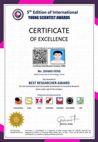 公司博士研究生封志伟同学荣获2023年国际学术“最佳研究者奖”