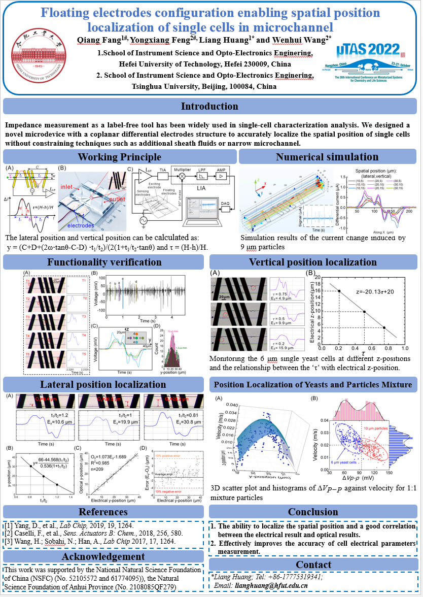 相关研究论文“Floating-Electrode-Enabled Impedance Cytometry for Single-Cell 3D Localization”发表在国际权威期刊《Analytical Chemistry》(影响因子8.008)上,并入选为第95期封面。此外相关研究参加了国际化学和生物微系统学会(Chemical and Biological Microsystems Society, CBMS)主办的第26届国际微全分析系统会议(26th International Conference on Miniaturized Systems for Chemistry and Life Sciences, MicroTAS 2022),并获得“最佳学术海报奖”。