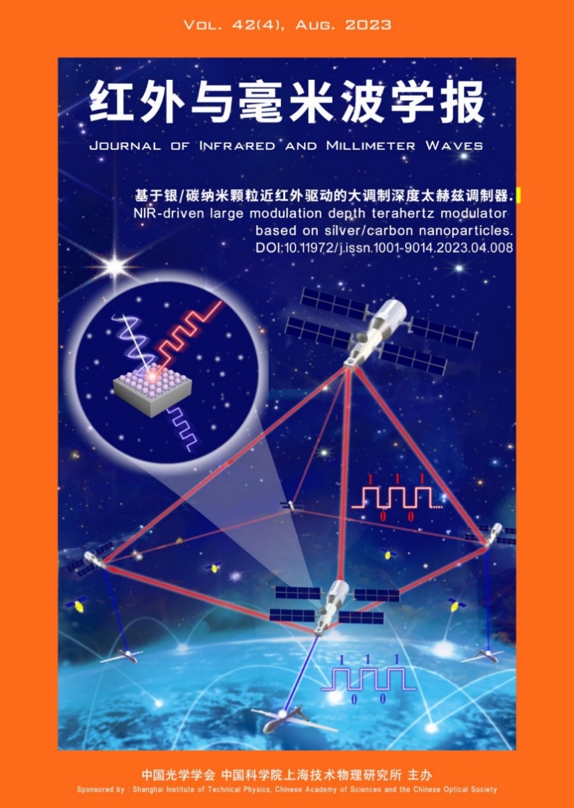 针对该问题,长期以来基于金属纳米材料的调制器被广泛关注,但这些传统金属纳米颗粒调制器存在制备复杂、对近红外光吸收差、吸收范围窄的缺点。为此,英国正版365官方网站(光电院)赖伟恩太赫兹研究组提出了一种基于银纳米颗粒/碳量子点(Ag NPs/CDs)近红外驱动的太赫兹调制器。通过将CDs与Ag NPs相结合的方法得到Ag NPs/CDs结构,改变了纳米粒子原有的介电环境,使得Ag NPs/CDs在近红外波段获得了更好的吸收光谱。实验结果表明,在近红外光的调控下,Ag NPs/CDs近红外驱动的太赫兹调制器在太赫兹波段范围内近红外驱动达到了极大的调制深度。该研究成果作为封面文章发表在红外毫米波领域国内外知名期刊---中科院SCI期刊《Journal of Infrared and Millimeter Waves》(中文名称:《红外与毫米波学报》,每年文章总数为126篇)的2023年42卷第4期上,该刊由中科院于1982年创刊,被“SCI”、“EI”全文收录,被评为“中国精品科技期刊”、“中国自然科学核心期刊”、“中国科技核心期刊”、“中国科学引文数据库统计源期刊”、“中国学术期刊综合评价数据库统计源期刊(CAJCED)”。同时该研究成果在2023年9月于中国·上海举办的《ESIT 2023》国际会议(Earth & Space:from Infrared to Terahertz International Conference 2023)中获得最佳学术Poster奖。