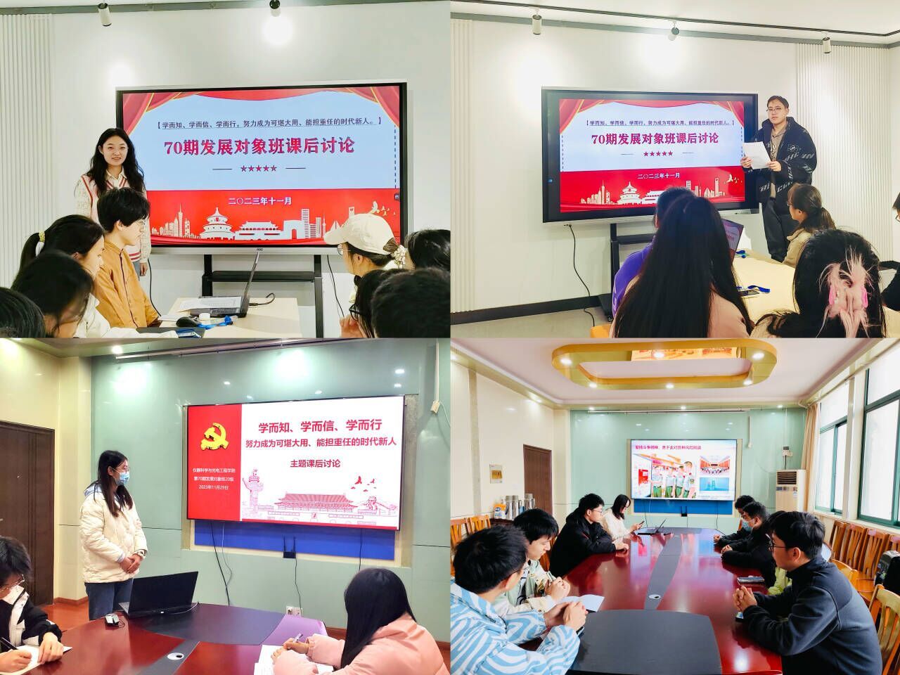 11月29日下午,公司党校第70期发展对象班成员分成三组,分别在屯溪路校区7号楼员工社区与科技楼516会议室开展了“学而知、学而信、学而行,努力成为可堪大用、能担重任的时代新人”主题讨论,第70期党校发展对象班46名学员参加了此次活动。