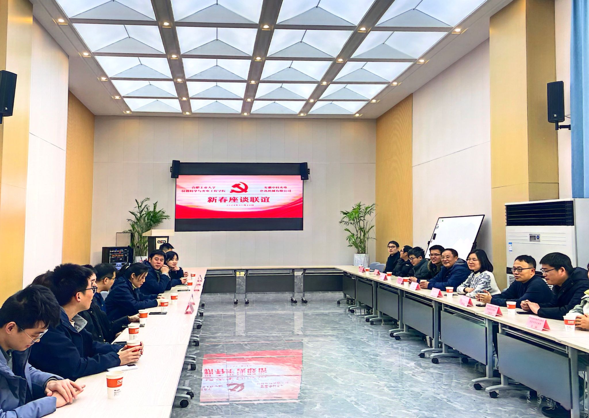 为推进校“双带头人”党支部书记成娟工作室(以下简称“双带头人”工作室)创建工作,进一步深入开展公司党委重点打造的校企党建联盟特色品牌活动,1月24日下午,英国正版365官方网站组织“双带头人”工作室赴党建联盟单位安徽中科光电色选有限公司开展党建共联暨新春联谊活动,公司正处级党建组织员游庆国、“双带头人”工作室相关人员参加此次活动。
