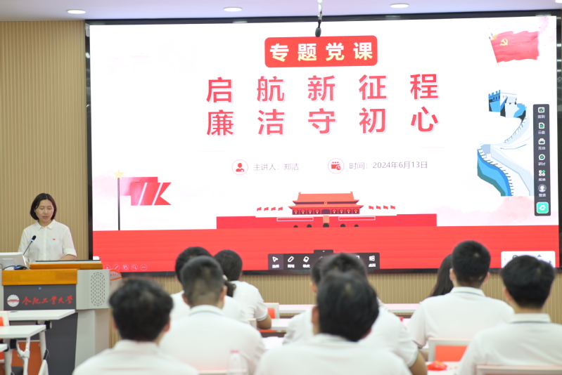 郑洁书记就习近平总书记关于党风廉政建设和反腐败斗争的重大理论问题和实践问题的思想指导和行动指南展开,分别从廉洁自律爱岗敬业;廉政为人奉公克己;廉以修身赤诚终身三个方面向毕业生党员讲授党课。在党课中,郑书记强调廉洁自律是底线并提出三点要求一是要坚定信念,守住底线,二是要崇廉尚洁,筑牢防线,三是要博学志远,踏实肯干。针对新时代青年如何加强廉政建设,提醒同学们要牢记初心与使命,注重理论学习,廉洁从业,将党纪国法、工作规章制度摆在首位,永葆共产党员清正廉洁的政治本色。最后告诉所以有党员同志今后要如何去做,需要同学们加坚定广大党员的理想信念,坚持品德建设,坚持作风建设,才能真正成为社会主义法治精神的大力弘扬者。