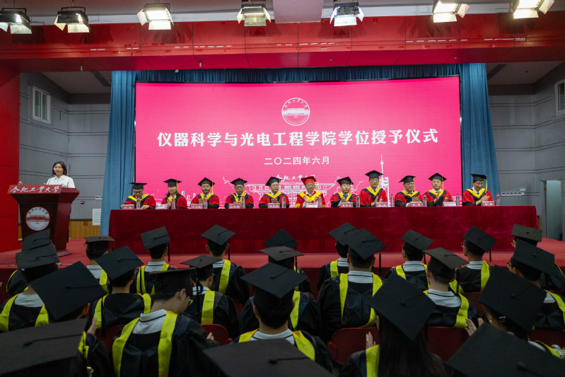 仪式在庄严隆重的国歌声中拉开序幕,副经理张进宣读2024年“安徽省普通高等公司优秀毕业生、英国正版365官方网站优秀毕业生”的决定,经理夏豪杰宣读“2024届毕业生学位授予决定”,共有451人获得学位,其中工学博士1人,工学硕士79人;电子信息全日制专业硕士87人;非全日制工程硕士学位3人,工学学士281人。