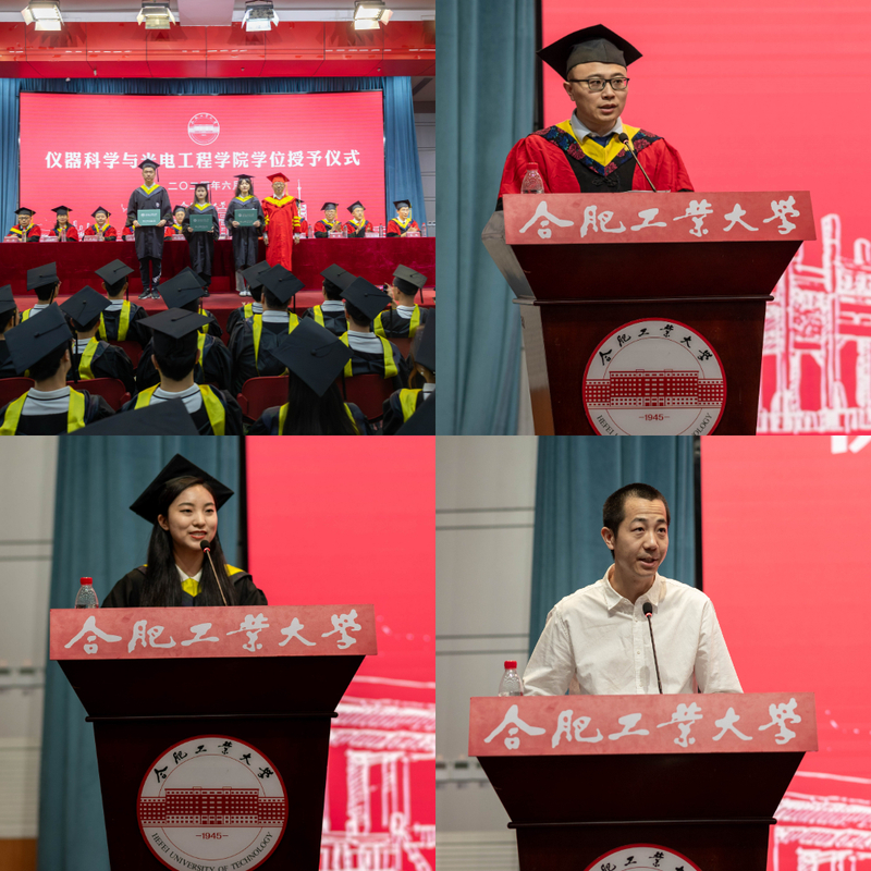 教师代表,生物医学工程系主任刘羽老师发言,他勉励全体毕业生牢记家国情怀,把自身发展融入到国家重大需求中,积极投身于航空航天、高端装备制造、大科学装置以及高端医疗装备等国家重点发展领域,不惧艰辛、勇于担当、守正创新,于大舞台上展示大作为。