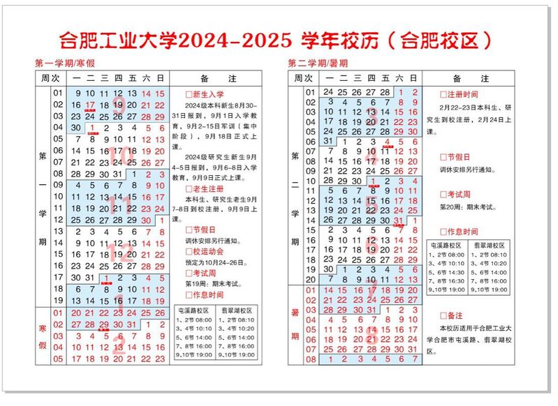 2024-2025学年校历(合肥校区)