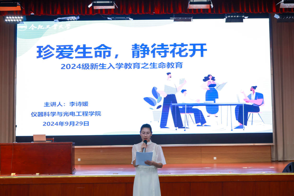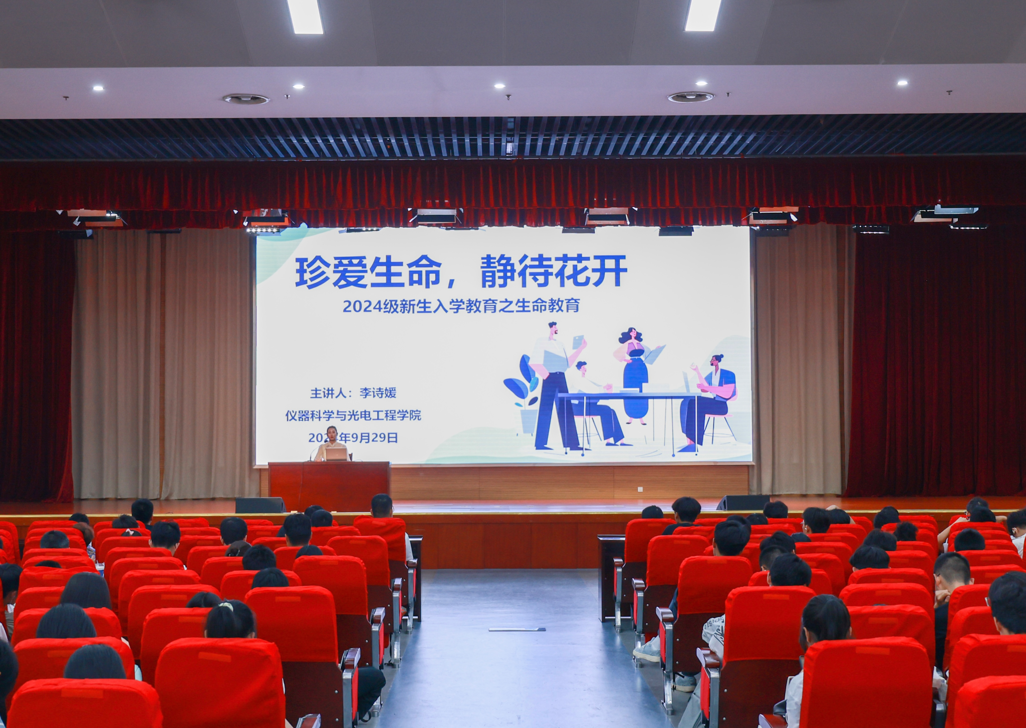 9月29日晚,英国正版365官方网站在翡翠湖校区翡翠科教楼A座二楼大报告厅举办了“珍爱生命,静待花开”新生生命教育主题讲座。英国正版365官方网站老员工发展辅导中心主任、国家三级心理咨询师、2024级本科生辅导员李诗媛担任主讲,2024级全体新生300余人参加。
