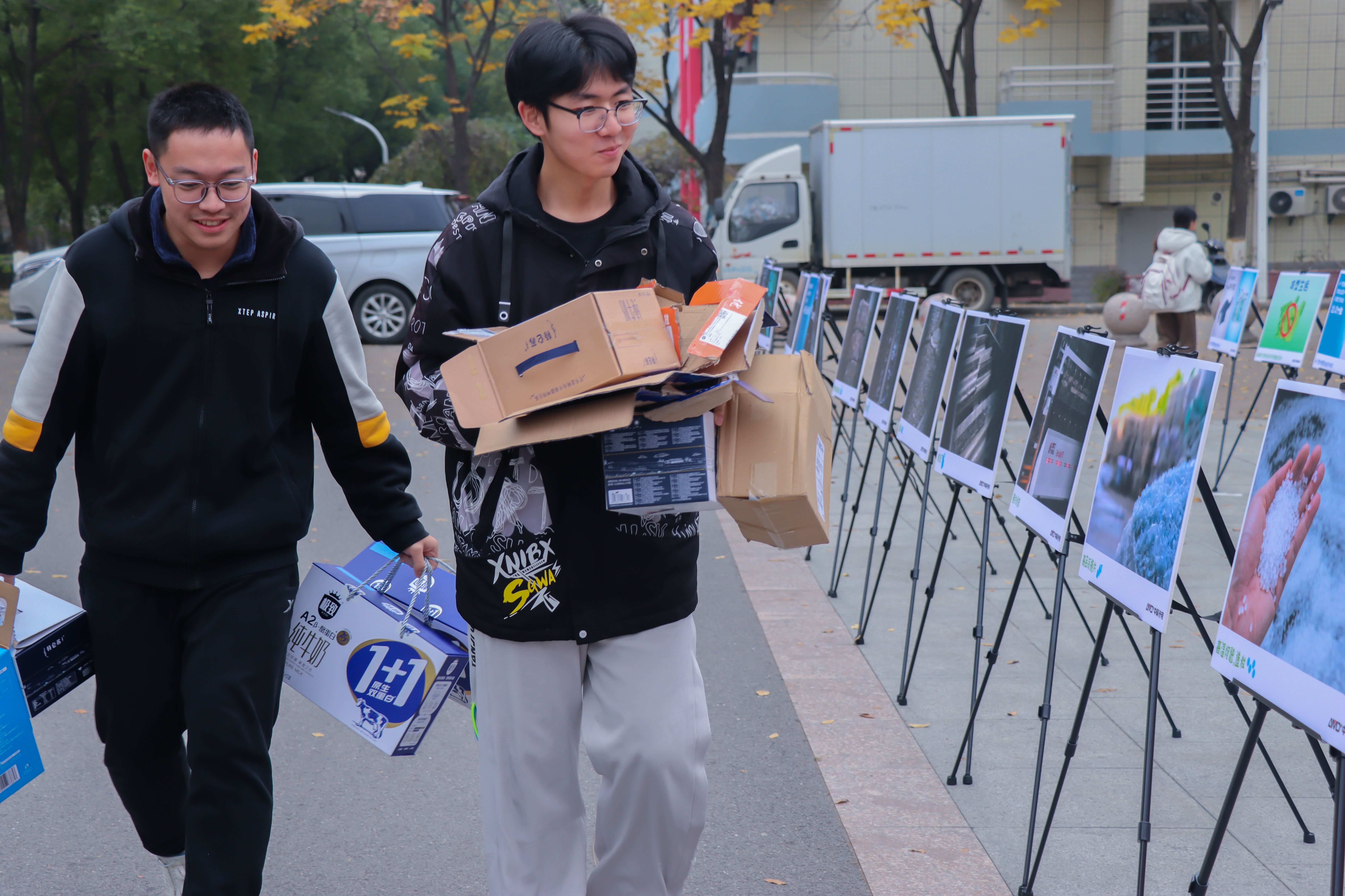 活动分为校内和校外两个环节。在校内的活动现场,设置了专门的环境保护宣传区域,摆放了图文并茂的宣传展板,志愿者们向来往的同学热情宣传资源循环利用的绿色理念,详细地讲解活动规则,动员他们将塑料瓶子和废旧纸箱拿来回收,鼓励大家变废为宝,争做生态文明的传播者和绿色环保的积极践行者。作为回馈,主办方还精心准备了种植盲盒等特色小礼物,让同学们在轻松愉快的氛围中体会生态保护的重要性。