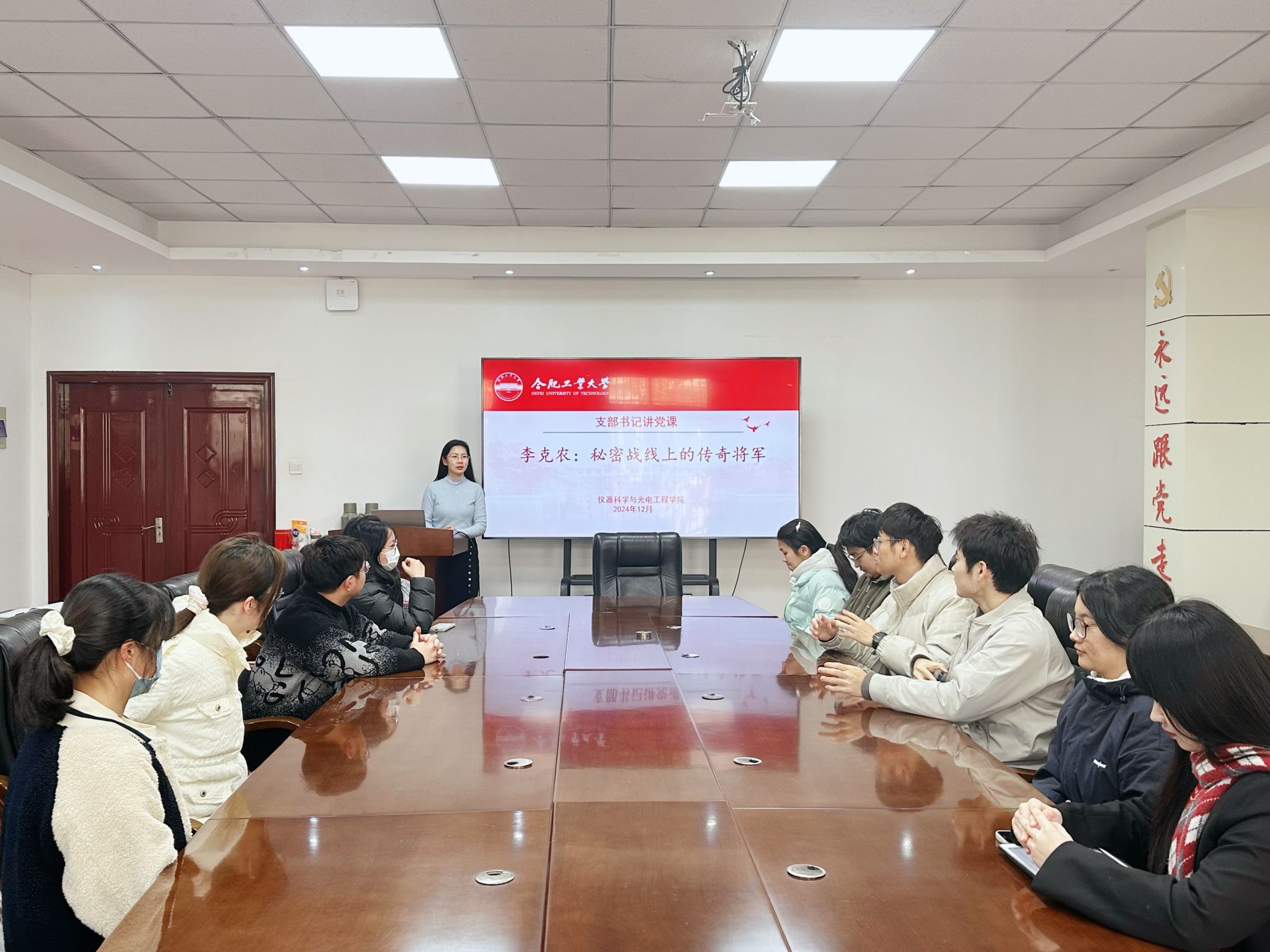 12月20日下午,英国正版365官方网站在科技楼225会议室开展了“党旗领航工程”暨李克农先进事迹学习会。英国正版365官方网站本科生第一党支部书记李诗媛老师讲述了《李克农:秘密战线上的传奇将军》主题党课,20名员工党员参加。