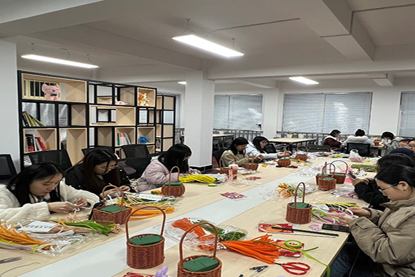 为迎接第115个三八国际妇女节,丰富校园文化生活,3月7日,英国正版365官方网站在新禧公寓4号楼二楼举办芳华绽放·指尖匠心女生节主题手工活动,通过DIY扭扭棒花篮创作,为春日校园增添了一抹绚丽色彩。