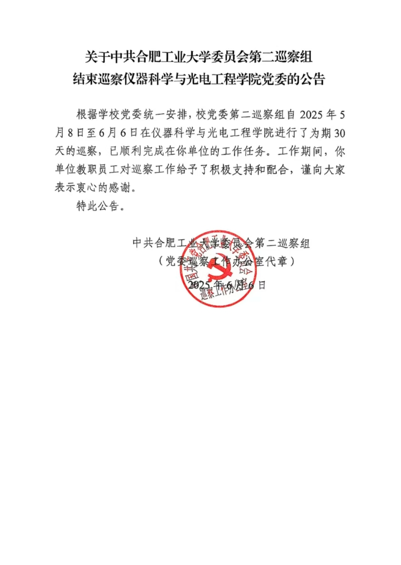关于中共英国正版365官方网站委员会第二巡察组结束巡察公司党委的公告