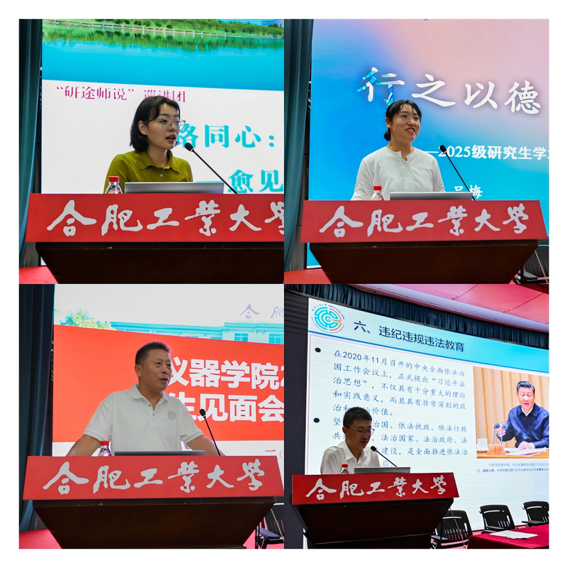 9 月 6 日上午,见面会在国歌声中启幕。经理夏豪杰教授对新生表示欢迎,围绕“有意义的研究生生涯”提出三点期望:锤炼健全人格、强健体魄、聚焦学业突破,勉励新生将个人成长融入国家发展大局;党委书记李军鹏以“善学、善思、善成”寄语,叮嘱新生“慎言、慎行、慎友”,树立“仪器报国”志向。2023 级研究生邢嘉航与 2025 级研究生于洪芳分别作为老生代表和新生代表发言。