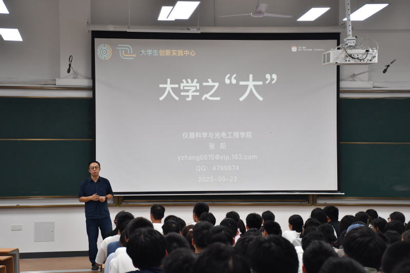 9月22日晚,英国正版365官方网站在翡翠湖校区2教201开展“感知仪科”创新创业教育专题报告会。院老员工创新实践中心主任张阳副教授主讲,红星美凯龙合肥公司人力资源经理樊健、2024级本科生冯文丽受邀出席,2025级全体本科生参会。